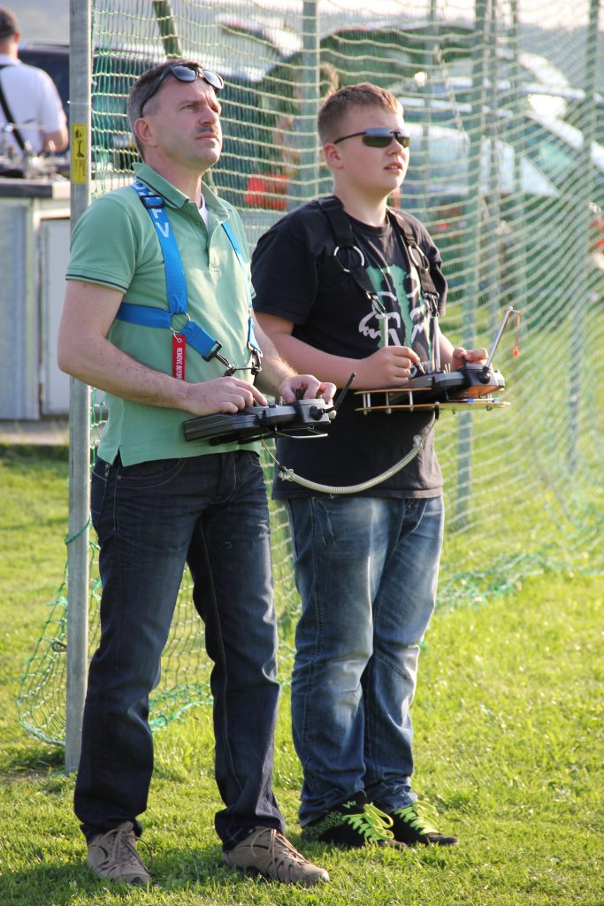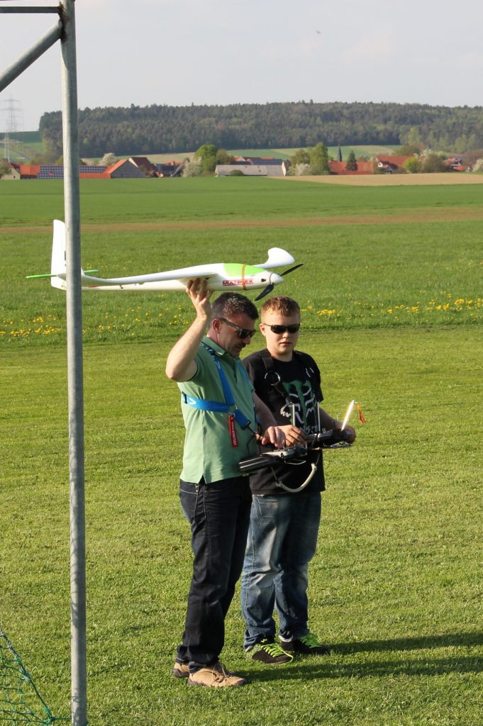 Die ersten Schritte werden mit einem erfahrenen Modellpiloten mit Hilfe eines Lehrer-Schüler-System durchgeführt. Sofern noch kein eigenes Modell und Steuerung vorhanden, werden Sender und Modell vom Verein gestellt. Lehrer und Schüler haben jeweils einen Sender, die per Kabel miteinander verbunden sind.